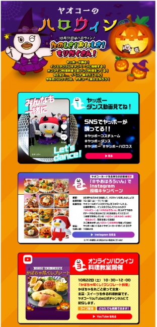 自作のハロウィン料理や店頭配布台紙へのお絵描きをInstagram投稿することでカードポイントやヤッポーぬいぐるみが当たるキャンペーンや、ハロウィン向けのオンライン料理教室のライブ配信を行う。