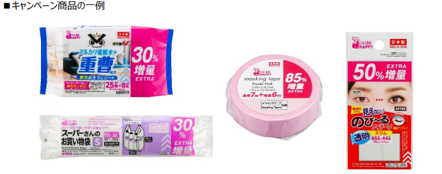 (株)大創産業(広島県東広島市、矢野靖二社長)は11 月1日から、DAISO(ダイソー)で日用品増量キャンペーンを開始する。