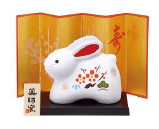 2023年の干支である卯(うさぎ)の置物。卯が跳ね回る姿から「飛躍」「向上」の象徴として尊ばれてきた。「卯」が作物の繁茂を表していることから、豊穣・子孫繁栄のお守りとしても親しまれている。660円。