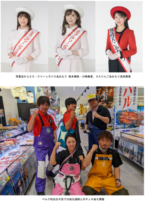 また、11月19日(土)・20日(日)の2日間はベルク和光白子店(埼玉県和光市)にてミスりんごあおもりやミスクリーンライスあおもりが来店する。また両日とも青森県の若手漁師が店頭にて水産物のアピールや希望者には漁師とチェキによる記念撮影写真及び漁師カードを数量限定でプレゼントするイベントを行う。