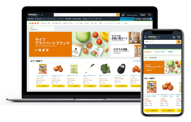 対象エリアに居住する Amazonプライム会員の顧客は、ライフの実店舗で取り扱っている新鮮な野菜や果物、精肉、鮮魚をはじめ、「ライフプレミアム」や「スマイルライフ」といったライフのプライベートブランド商品など、合計数千点の商品を Amazon.co.jp の Webサイトや Amazonショッピングアプリを使用してオンラインで注文できる。