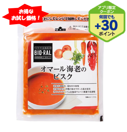 お試し価格は、「オマール海老のビスク」は通常価格498円(本体価格、以下同)を478円、「無塩せきベーコンブロック」は通常価格238円を218円と、20円安く提供する。またアプリ限定クーポン使用クーポンでは、「国産野菜で作った野菜だし」「国産素材だけで作ったあご入り鰹和風だし」(ともに398円)は、何回でもライフ50ポイント(50円相当)をプレゼントする。もちろん「オマール海老のビスク」のようにお試し価格と30ポイント付与のダブル販促もある。