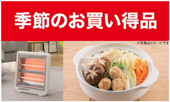 さらに1⽉16⽇(⽉)までの期間、寒い冬や年末年始の時期に役立つ寝具やキッチン・バス⽤品など最⼤1140アイテムを「期間限定価格」で販売する。
