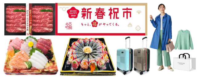 また、新型コロナウイルス感染症拡大防止の行動制限解除に伴い需要が回復している「キャリーケース」や「鞄」などのトラベルグッズ、アパレル衣料といったお出かけ着の福企画も充実させた。企画数は、衣料品・くらしの品など130企画、食品74企画の計204企画。