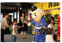 青森県産品PRキャラクターの”決め手くん”とジャンケンをして勝った人には素敵なプレゼントが贈られる。