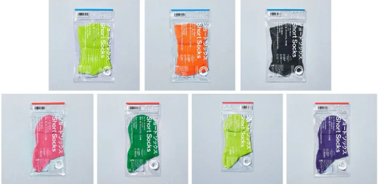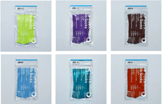 足底は、通気性が良い鹿の子編み仕様で、つま先、かかとには補強糸を使用し、耐久性を高めた。また、抗菌防臭加工も施した。カラーはライムイエロー、むらさき、チョコレート、サックスブルー、エメラルドブルー、あかね。サイズは25-28cm。