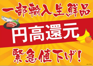 (株)⻄友(東京都北区、⼤久保恒夫社長)は、2月2日(木)から全国327店舗で輸入生鮮食品の「円高還元セール」第2弾を実施する。