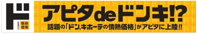 また、番外編として「アピタ de ドンキ」を開催する。PPIHグループが運営するユニー(株)「アピタ」の41店舗で、約160アイテムの「情熱価格」商品を集めたポップアップストアが期間限定で登場する。「まだドンキに行ったことがない」という人が、いつもの買物のついでにドンキを体験できる。期間は2月17日(金)~7月6日(木)まで。
