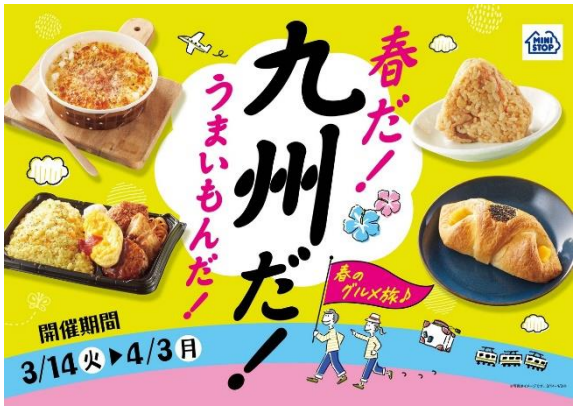 ミニストップ(株)(千葉市美浜区、藤本明裕社長)は 3月14日(火)から4月3日(月)までの期間、「九州フェア」を実施する。九州に関する菓子や、カップラーメン、オリジナルの「ずっしりシリーズ」商品を販売する。