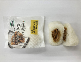 「新潟県産コシヒカリ使用 蓮根と和牛の金平」は、シャキシャキした食感が美味しい徳島県産れんこん」を使用した。香川県の特産品のオリーブの皮を飼料にした、旨みの強さとくちどけの良さが特長のオリーブ牛を使ったきんぴらを具材にした。200円。