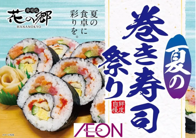 イオンリテール(株)(千葉市美浜区、井出武美社長)は5月5日(金)~7日(日)の3日間、関東・北陸信越・東海・近畿・中四国の「イオン」「イオンスタイル」約380店舗で、太巻や手巻き寿司などを取り揃えた「夏の巻き寿司祭り」を開催する。