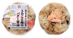 ●「きのこと鮭のバター醤油おむすび横手市産しいたけ使用」165円(税抜き、以下同じ)