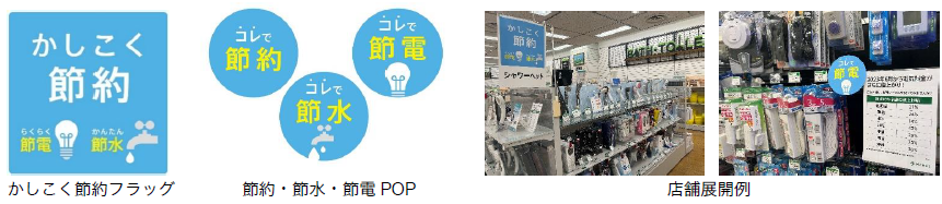 また、店頭では節約に役立つ各コーナーに「かしこく節約」のフラッグや POPを設置して注意喚起している。