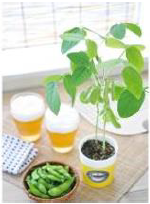 ビールグラスのような美濃焼のポットでえだ豆を栽培できるセット。種まきから収穫まで楽しめる。