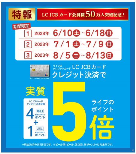 ライフnews|「LC JCBカード」会員数50万人突破・記念のポイント5倍実施