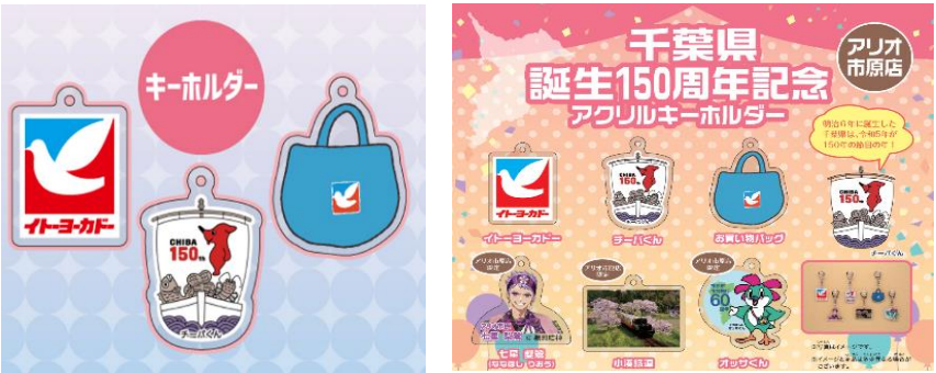 また、イトーヨーカドーでは、地域・企業が協賛する、県内の観光名所・名産・特産品の「アクリルキーホルダー」「アクリルマスコット」を6月14日(水)から期間限定で販売している。