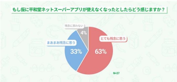 「もし仮に平和堂ネットスーパーアプリが使えなくなったらどう感じますか?」という質問には、「使えなくなったらとても残念に思う」「まあまあ残念に思う」と答えたユーザーが96%と非常に高い評価だった。