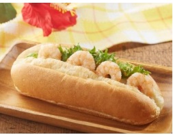 ガーリックシュリンプソースで和えた海老を、ガーリック風味のポテトサラダと一緒にサンドした。318円。