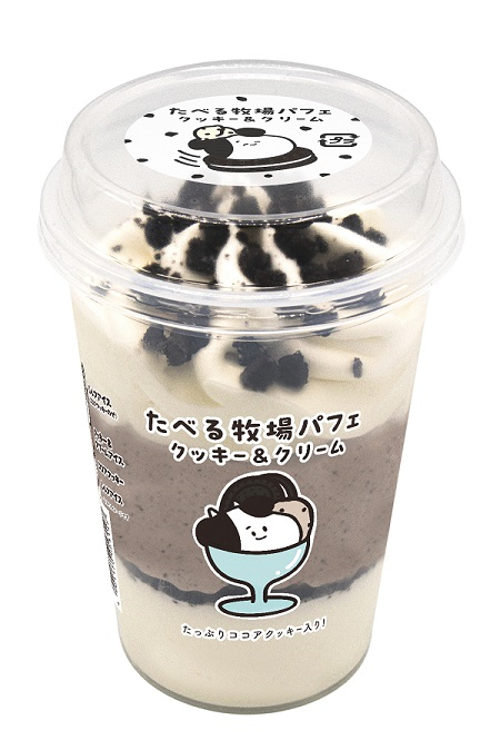 ファミリーマートの人気アイス「たべる牧場」シリーズの3層仕立てのパフェアイス。北海道産牛乳を56%使用したコクがありながらも後味すっきりしたミルクアイス、クッキークリームアイス、天面と中間層にはココアクッキーをトッピングした。価格は398円(税込み、以下同じ)。