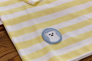 セーターに使用している素材には、回収されたウール製品や生地を粉砕し、再度紡績した糸を使用している。つくろう服は生産時にできた小さな傷や汚れによって販売できない服にワッペンを付けた商品。