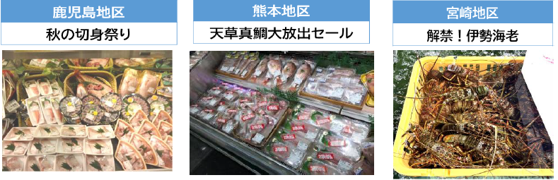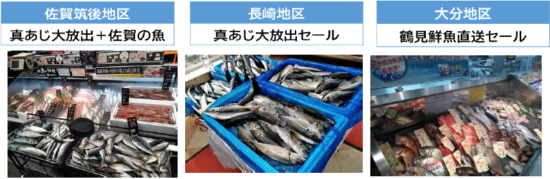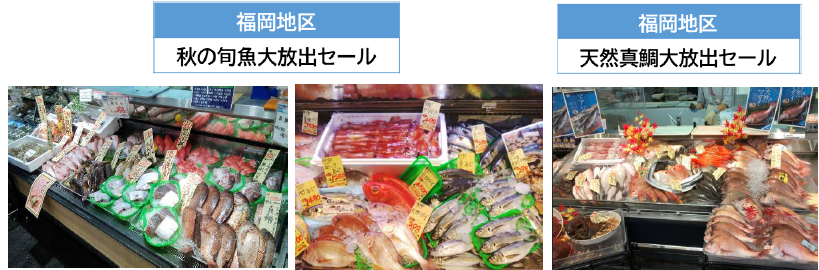 9月15日(金)は福岡県・熊本県では「天然真鯛」、佐賀県・長崎県では「真あじ」など地域ごとにおすすめの新鮮な魚を販売する。