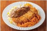 「トルコライス」は、ピラフ、ナポリタン、トンカツをワンプレートに盛り付けたボリューム感のある弁当。ピラフと太麺のナポリタンに、トンカツと野菜の旨みを凝縮したカレーソースを盛りつけた。598円。