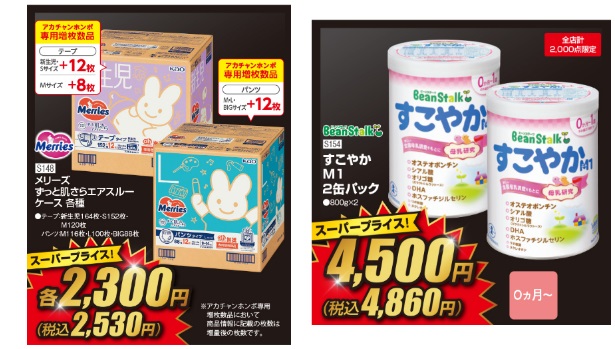 第1弾セールは紙おむつや粉ミルク、おしりふきウォーマー、第2弾セールはレトルト離乳食やおしりふき、ベビー・キッズ用パジャマなどが特別価格で打ち出される予定だ。