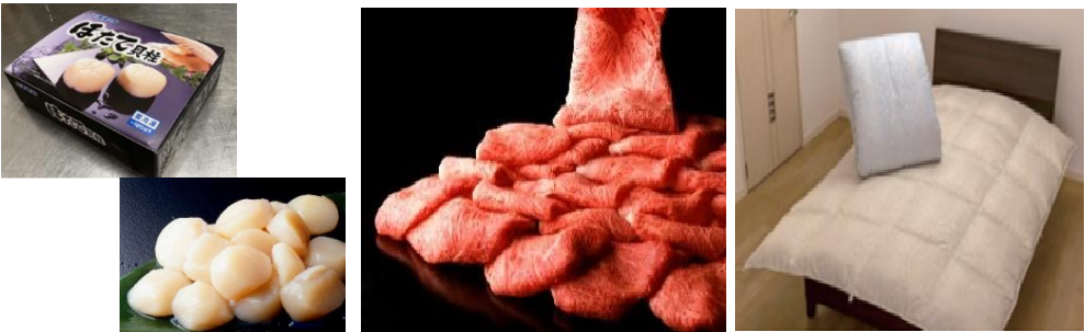 特選品は、「北海道産 刺身用冷凍帆立貝柱 1Kg」3980円(本体価格、以下同)や「刺身用本鮪赤身切盛 (養殖・解凍) 100g」598円、「山形県産山形牛すきやき用切落し(肩・バラ又はもも・バラ))100g当たり598円の食品、「羽毛掛布団(シングルサイズ)」1万円など。