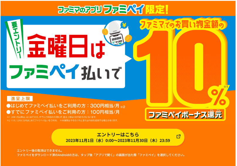 ファミマnews|「金曜日はファミペイ払いで10%還元キャンペーン」11月開始