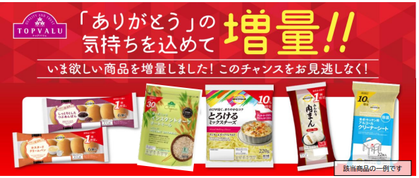 イオン北海道news|トップバリュ増量キャンペーン/17品目を期間限定で実施
