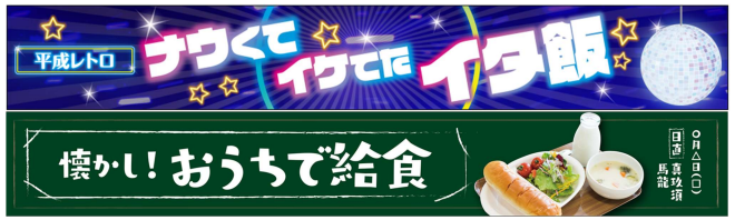 11 月 17 日(金)~11 月 19 日(日)は「平成レトロ」と称して「イタ飯」と「懐かし給食」を展開する。プロジェクトメンバーの意見をもとに店内BGMもちょっと懐かしいものに変更する。いつもと違った店内の空間で少しレトロな気持ちで買物を楽しんでもらおうという企画だ。