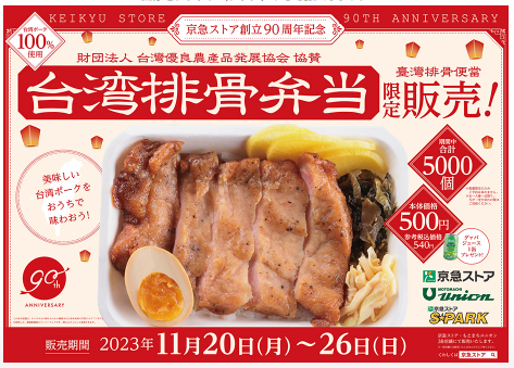 その一つとして、11月20日(月)~26日(日)の期間中には「台湾排骨弁当」を限定販売する。一部販売対象外店舗がある。