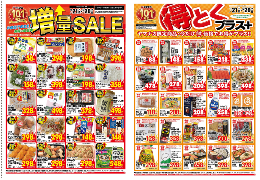 流通スーパーニュース > 販促 > ヤマナカnews|創業101周年記念商品の感謝セール、1カ月間実施 ヤマナカnews|創業101周年記念商品の感謝セール、1カ月間実施 販促 / 2023年11月27日 ツイート (株)ヤマナカ(愛知県名古屋市、中野義久社長)が創業101周年を迎え、11月21日(火)から12月20日(水)までの1カ月間、お得商品や増量品を揃えた「101周年記念商品」の感謝セールを実施中だ。 ヤマナカは1922年(大正11年)2月7日に名古屋市中区正木町で、中野商店として食品店を開いて創業した。2023年3月時点で、名古屋市を中心に61店舗を展開している。 ツイート