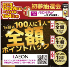 12月29日(金)~1月4日(木)の期間中、iAEON・イオンウォレットアプリのAEON Pay決済を対象に、決済の都度抽選で100人に1人全額ポイントバックが当たる抽選企画を実施する。