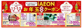 iAEONアプリ会員限定で、ご馳走食材や化粧品など厳選商品の値引きクーポンが配布される。