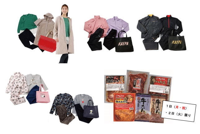 初売りならではの「福袋」は、食料品・衣料品・暮らしの品が勢ぞろい。一部店舗では取り扱いがない。