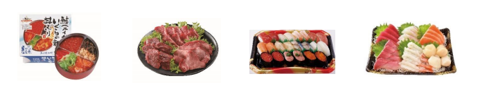 「新春ごちそうメニュー」では、握り寿司やお刺身盛り合わせ、アメリカ産牛焼肉盛り合わせなどを揃える。一部マックスバリュ店舗で取り扱いがあるが、イオン根室店・厚岸店・南平岸店では取り扱いがない。