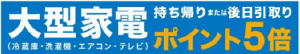 期間中は、冷蔵庫・洗濯機・テレビ・エアコンなどの⼤型家電を持ち帰るか、後⽇店頭で引き取ると、購⼊した⼤型家電のポイントが5倍付与される。ニトリネットで購⼊する場合は 2023年12⽉31⽇(⽇)17:00〜2024年3⽉31⽇(⽇)23:59までの購⼊が対象となる。