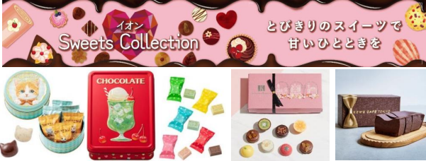 今年は「Sweets Collection」をテーマに、店頭で最大980 品目を展開するほかイオンの通販サイト「イオンショップ」でもチョコレートやアイスなどのスイーツを、WEB限定商品を含め、昨年比1.5倍となる190品目を展開する。