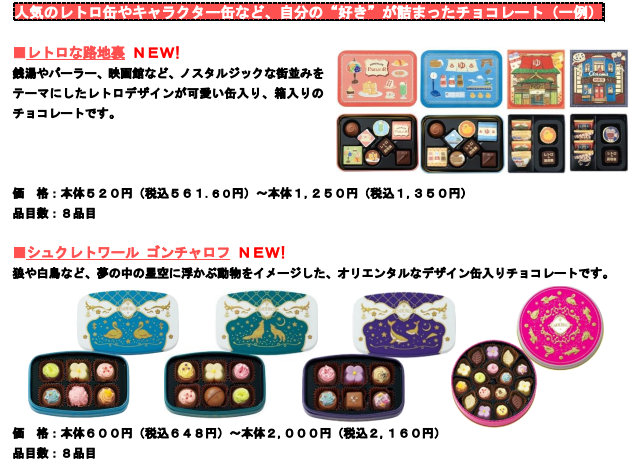 近年、働き方や生活スタイルへの価値観が大きく変化する中、いかに自分らしい幸せな生き方を実現するかをより重視する「well-being(ウェルビーイング)」や自分の趣味や嗜好には投資を惜しまないライフスタイルのニーズが高まっている。そこで、“自分らしい幸せ”に寄り添った、人気のキャラクターや話題の“レトロ缶”など、自分の“推し”や“好き”が詰まった商品のほか、ハイカカオやノンシュガーといった“体にやさしい”チョコレートなど、“ご自愛チョコ”を拡大して展開する。