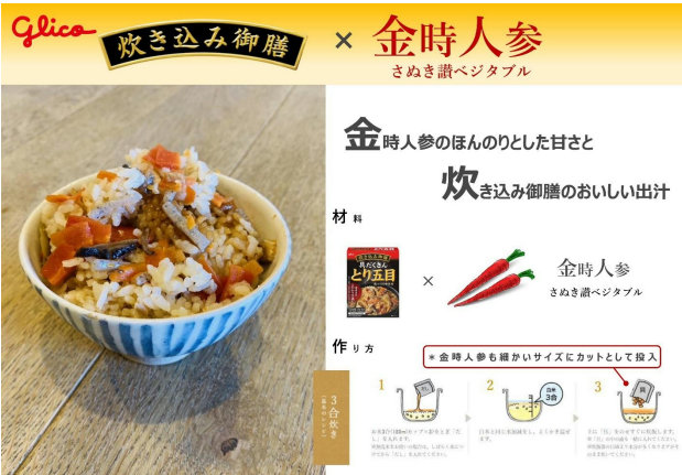 フェア当日には、「さぬきひめ」と江崎グリコによる「金時人参を使用した炊き込み御膳」の試食PRイベントを実施する。無くなり次第終了となる。