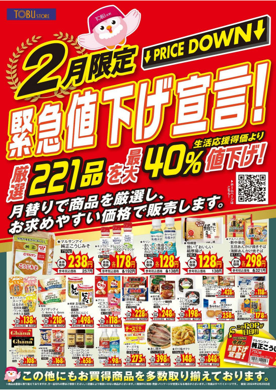 東武ストアnews|2月も「緊急値下げ宣言!」厳選221品目を最大40%値下げ