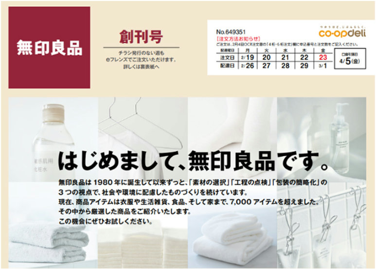 (株)良品計画(東京都文京区、堂前宣夫社長)は、コープデリ生活協同組合連合会(埼玉県さいたま市南区、熊﨑伸代表理事理事長)への商品供給を開始する。