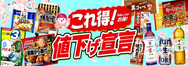 (株)東武ストア(東京都板橋区、木村吉延社長)は 4月1日(月)から 4月30日(火)までの1カ月間、食料品を中心とした生活必需品253品目を値下げする「これ得!値下げ宣言」を全60店で実施する。