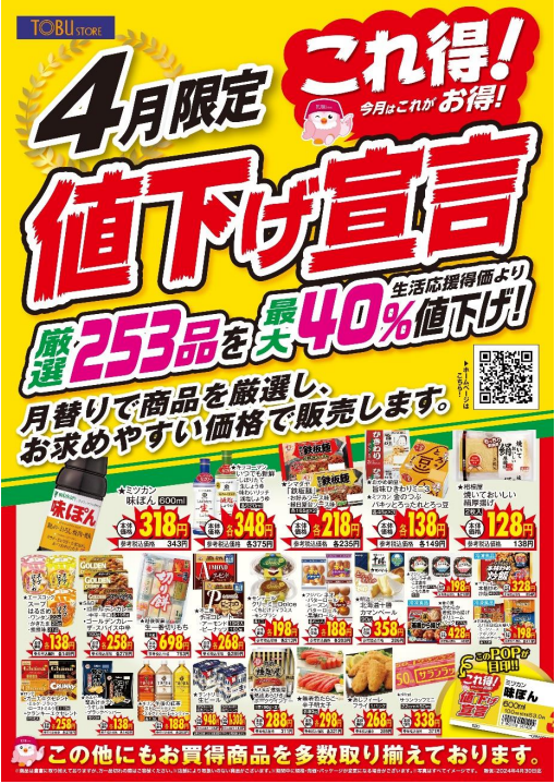 東武ストアnews|「これ得!値下げ宣言」4月は253品目を最大40%値下げ