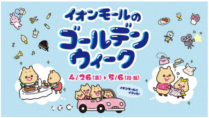 イオンモール(株)(千葉市美浜区、岩村康次社長)は、4月26日(金)~5月6日(月・祝)の期間中、全国のイオンモールで「イオンモールのゴールデンウィーク」を開催する。