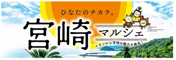 イオン九州(株)(福岡市博多区、中川伊正社長)は5月17日(金)から5月20日(月)の4日間、宮崎県の旬の食料品・自慢の逸品を取り揃えた「ひなたのチカラ。宮崎マルシェ」を、九州内の「イオン」「イオンスタイル」「マックスバリュ」68店舗で開催する。