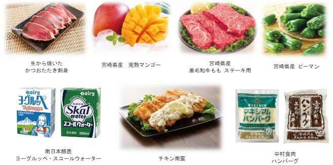 今回の「宮崎マルシェ」では、宮崎の太陽をいっぱい浴びて育った「完熟マンゴー」や新鮮な「カツオ」、「宮崎牛」や「チキン南蛮」など、宮崎の魅力を堪能できる商品を取り揃えた。その他にも「ヨーグルッペ」や中村食肉の「ハンバーグ」など人気商品を多数販売する。