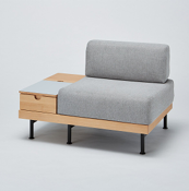 収納付きテーブルが⼀体化した1⼈掛けソファ。テーブル部分は左右どちらにも設置できる。価格は 4万4990円。