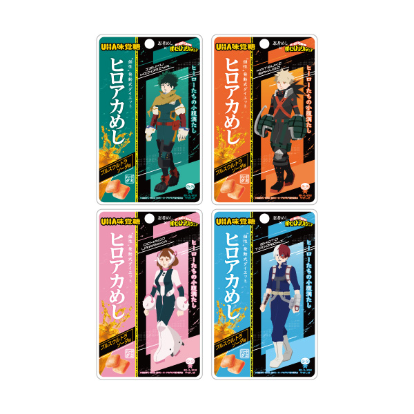 キャンペーンではコラボ商品として、コラボパッケージ全4種の「ヒロアカめし プルスウルトラソーダ味」本体139円、「クランキー 僕のヒーロークッキー&クリーム」本体170円を発売する。